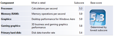 As you can see, Microsoft Vista includes a new scoring system to tell how capable your computer is, generally a score of 1-2 is good enough for general applications (office, internet browsers, smaller applications), 3-4 will run some 3-d programs/games and basic aero functions, and a score of 5-6 was top of the line per Vista's release and should take full advantage of any of Vista's features and run pretty much any program.